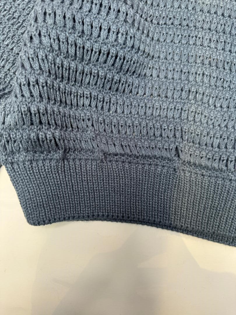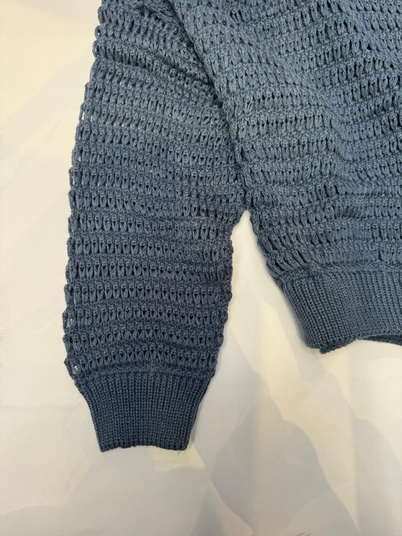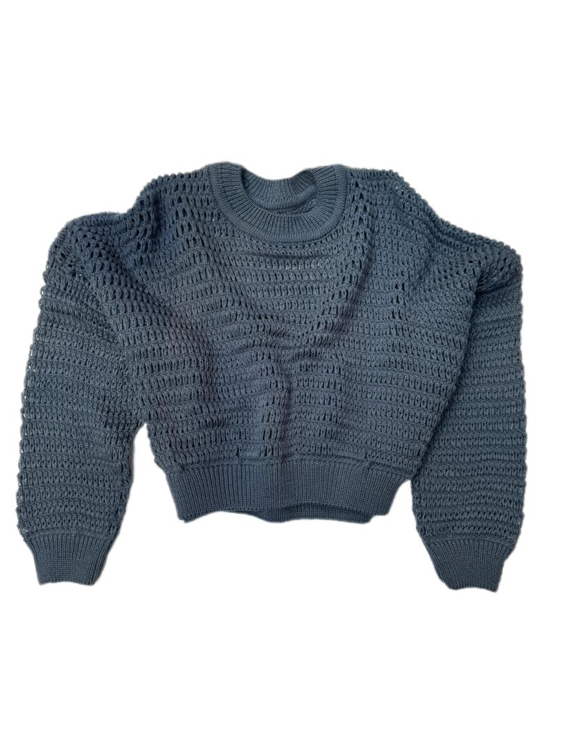 بافت زنبوری زنانه رنگ آبی خاکی -یقه گرد آستین بلند