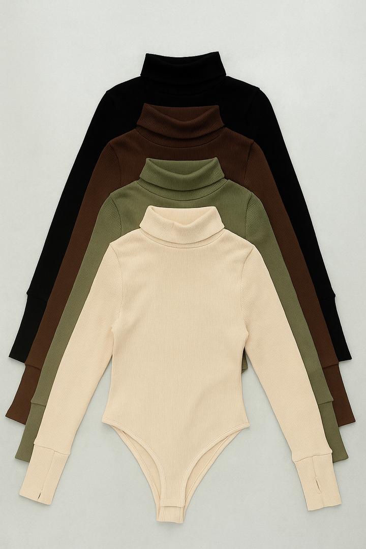بادی کبریتی یقه اسکی زنانه -آستین بلند در رنگ قهوه ای  – طراحی شیک،